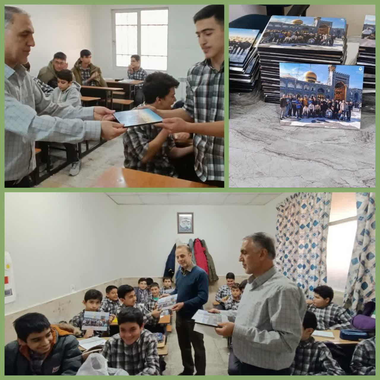 اهداء تخته شاسی با عکس یادگاری مشهدمقدس به دانش آموزانی که دراردوی مشهد شرکت کردند