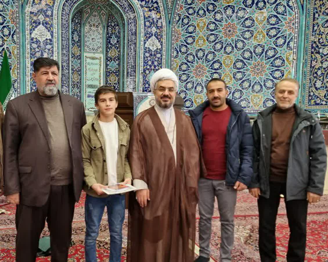 تقدیر از دانش آموز محمدامین مفاخری نفراول مسابقه قرآنی شهرستان، درنماز جمعه باحضور امام جمعه، فرماندارو نماینده دماونددرمجلس شورای اسلامی